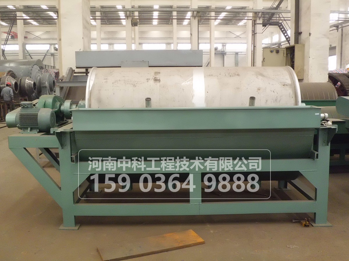 濕式永磁筒式磁選機(jī),本機(jī)廣泛用于選礦、洗煤和化工等部門,用于濕式選別粒度為6-0毫米的強(qiáng)磁性礦物,并將礦物分為磁性物及非磁性物兩種產(chǎn)品。它所選別的強(qiáng)磁性物的比磁化系數(shù)X應(yīng)不低于3000×106cm3/克,屬于這類礦物有磁鐵礦,磁黃鐵礦等,對于赤鐵礦、褐鐵礦、蕶鐵礦等須予選進(jìn)行磁化焙燒,方能進(jìn)行選別。